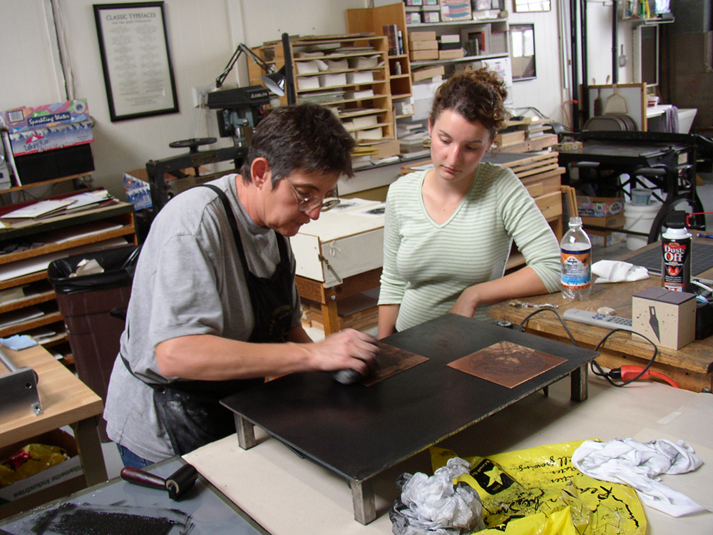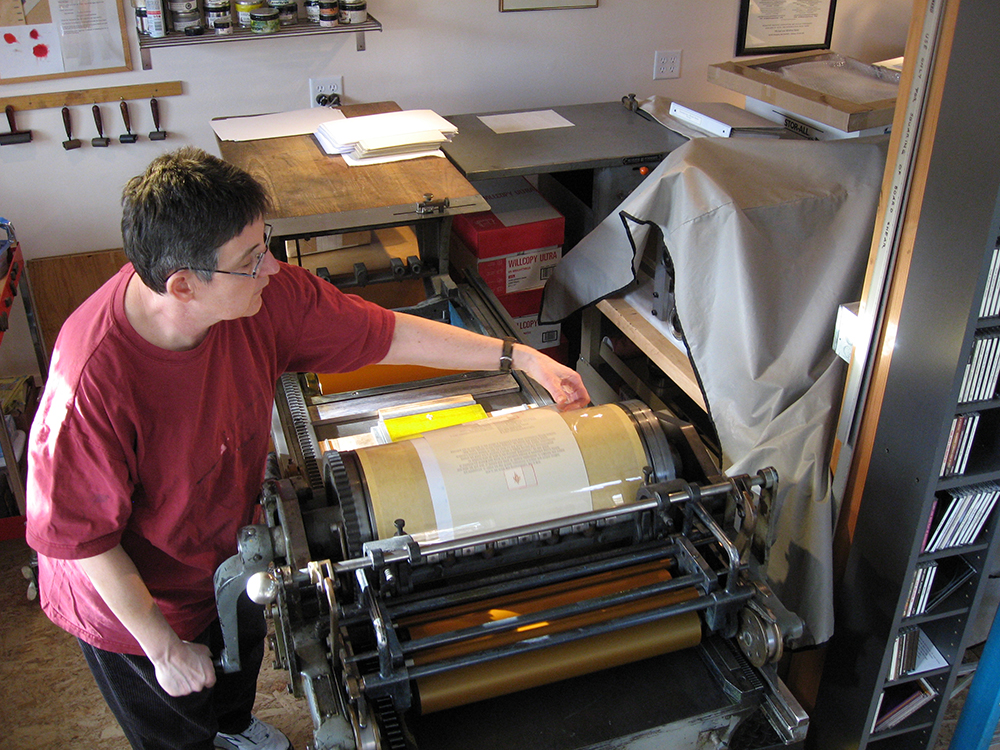 Proprietor Sandy Tilcock has over 30 years’ experience designing and producing limited-edition books, broadsides, commemorative awards and other forms. Her work, built on a long-standing relationship with her faithful Vandercook 219 hand-cranked cylinder press, is known for its elegance, precision, and the sensitive integration of text and image.