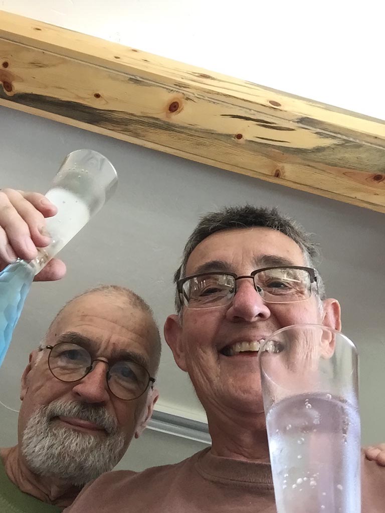 The final step: The author signs the edition and toasts the completion with the printer.